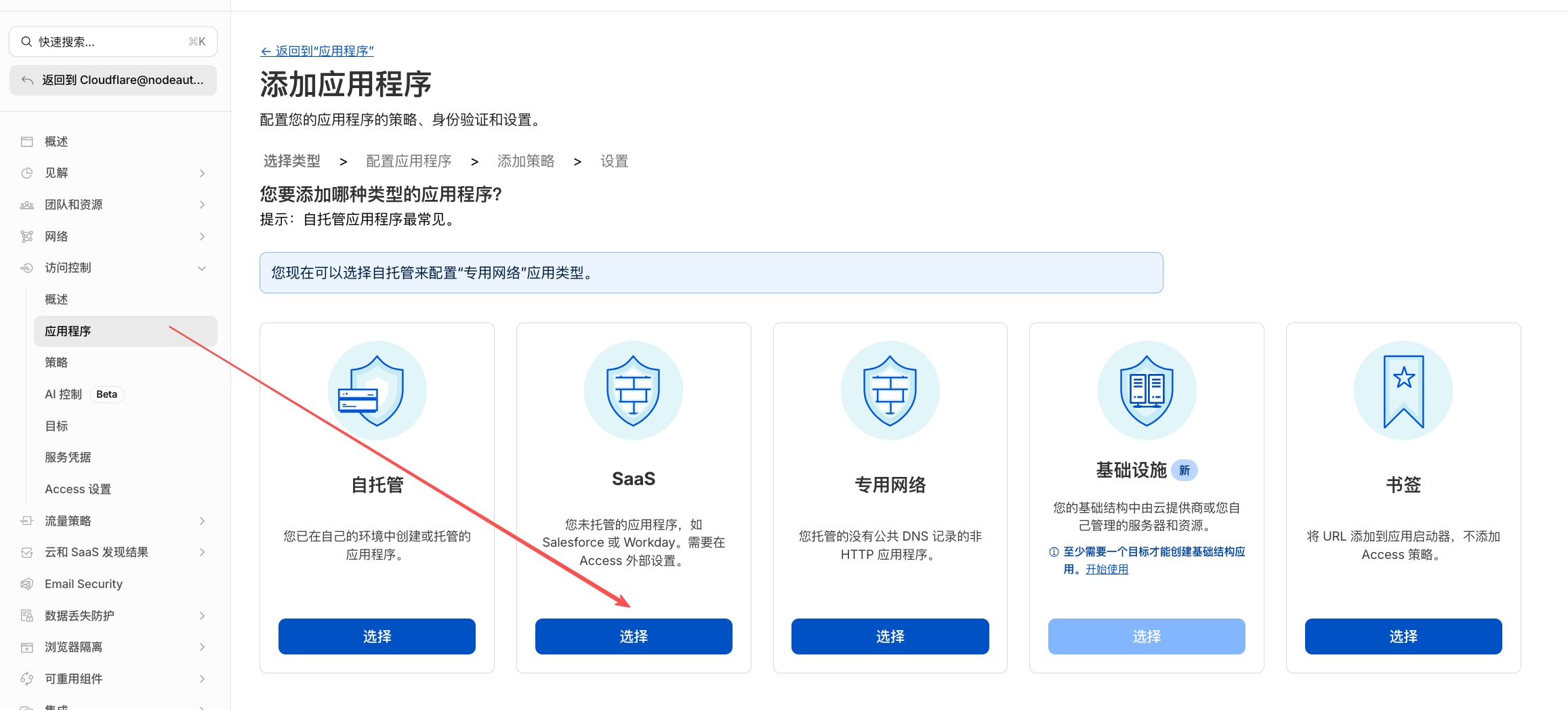 1. 进入 Cloudflare Zero Trust Dashboard -> Access -> Applications